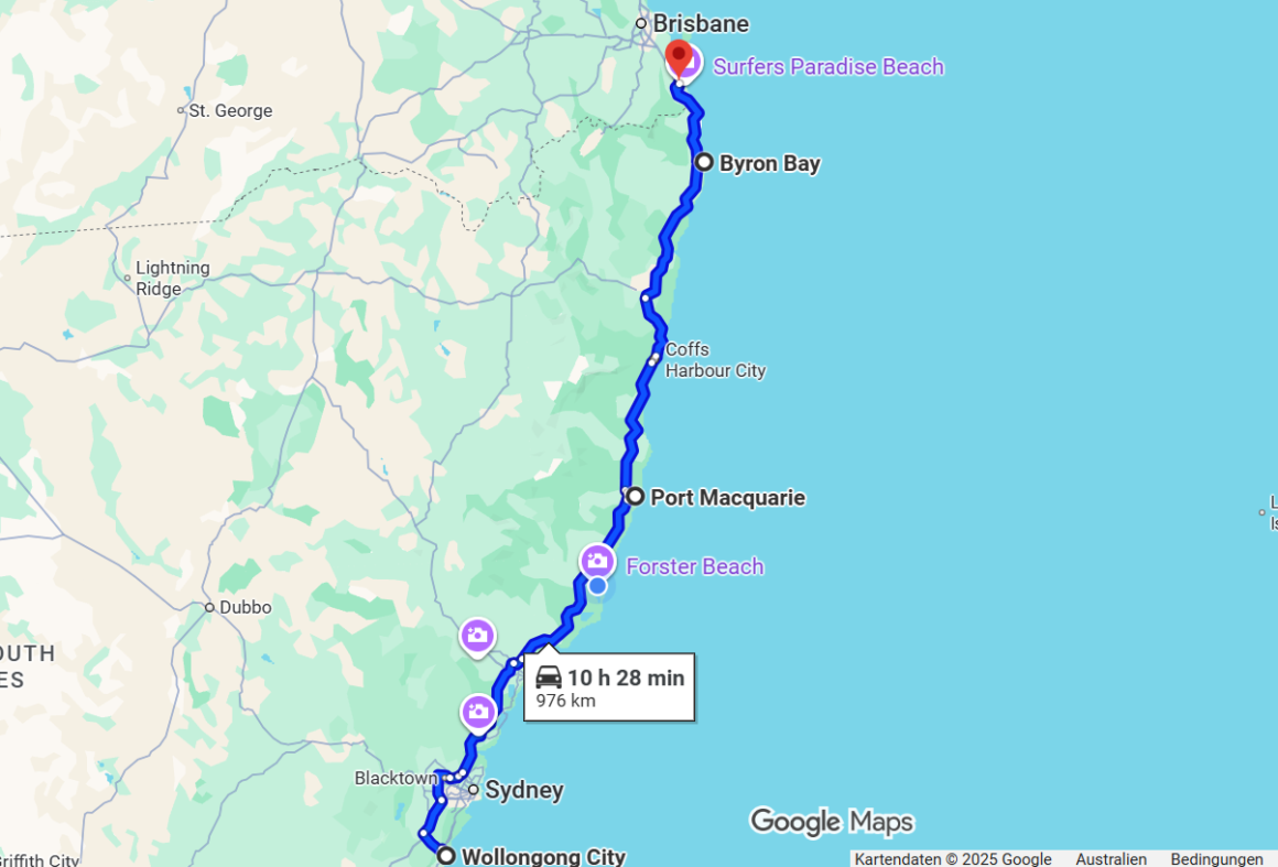 Wir fahren weiter Richtung Norden: von Port Macquarie über Byron Bay bis zur Gold Coast. Drei Orte – drei Welten. Port Macquarie wirkt modern und aufgeräumt, Byron Bay hingegen rustikal, mit bewegender Vergangenheit und alternativem Flair. An der Gold Coast ist der Teufel los: Mallorca-Feeling trifft auf eine Prise Vegas. Surfers Paradise lockt mit einem kilometerlangen Traumstrand – beliebt bei Jung und Junggebliebenen. 😊