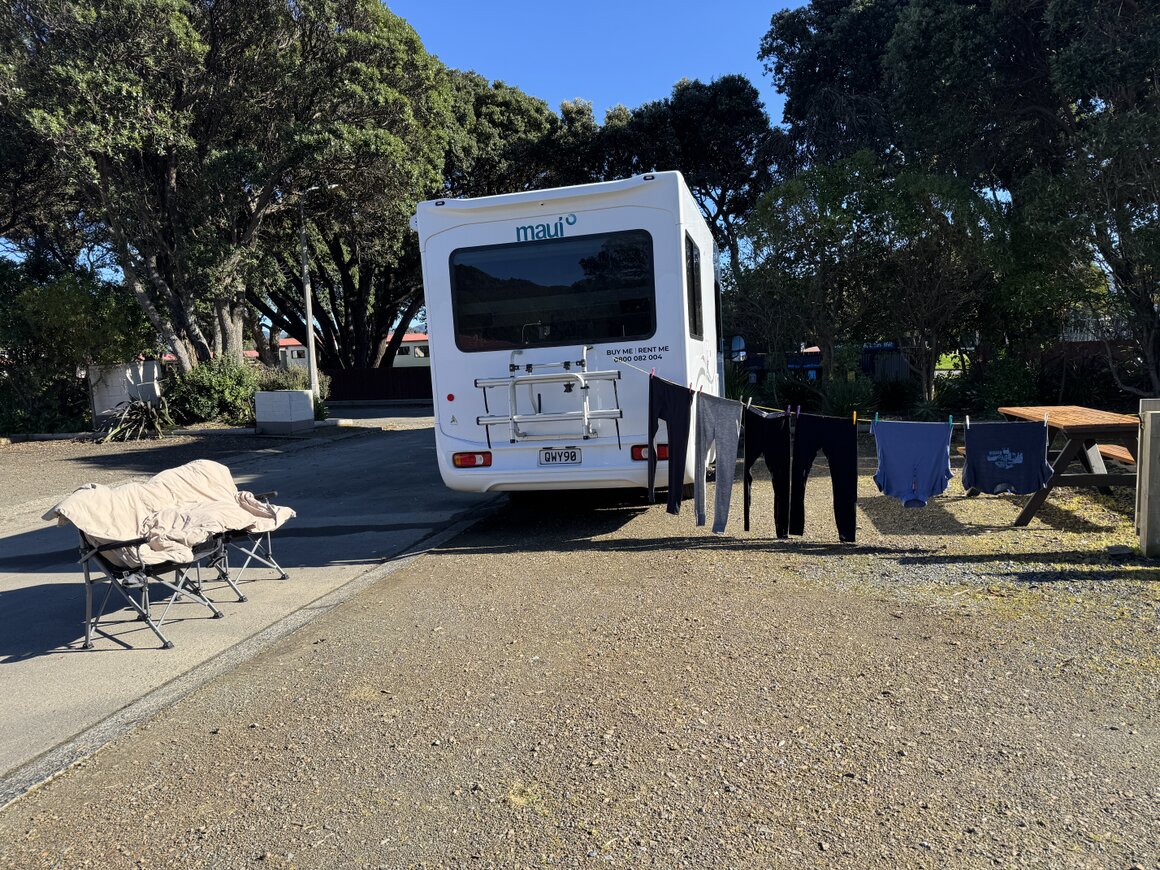 Nachdem wir das Wohnmobil übernommen haben, fahren wir zum nächsten Campingplatz am Meer in Takapuna.