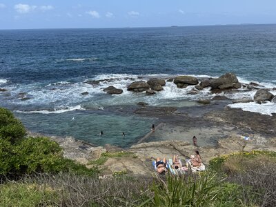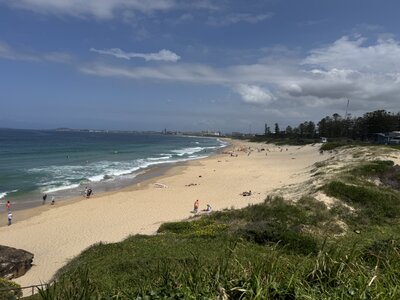 Wir fahren mit einem Mietauto nach Wollongong und geniessen die schöne Promenade. Ein besonderes Highlight ist die Walbeobachtung direkt von der Küste aus: Wal-Mütter schwimmen mit ihren Jungen ganz nah an uns vorbei – auf dem Weg Richtung Tasmanien.