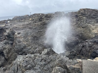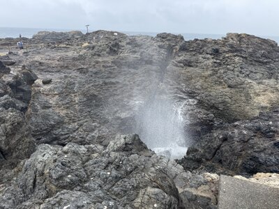 In Kiama erleben wir die eindrucksvollen Wasserfontänen, die unter den Felsen hervorbrechen und meterhoch zwischen den Klippen emporsteigen.